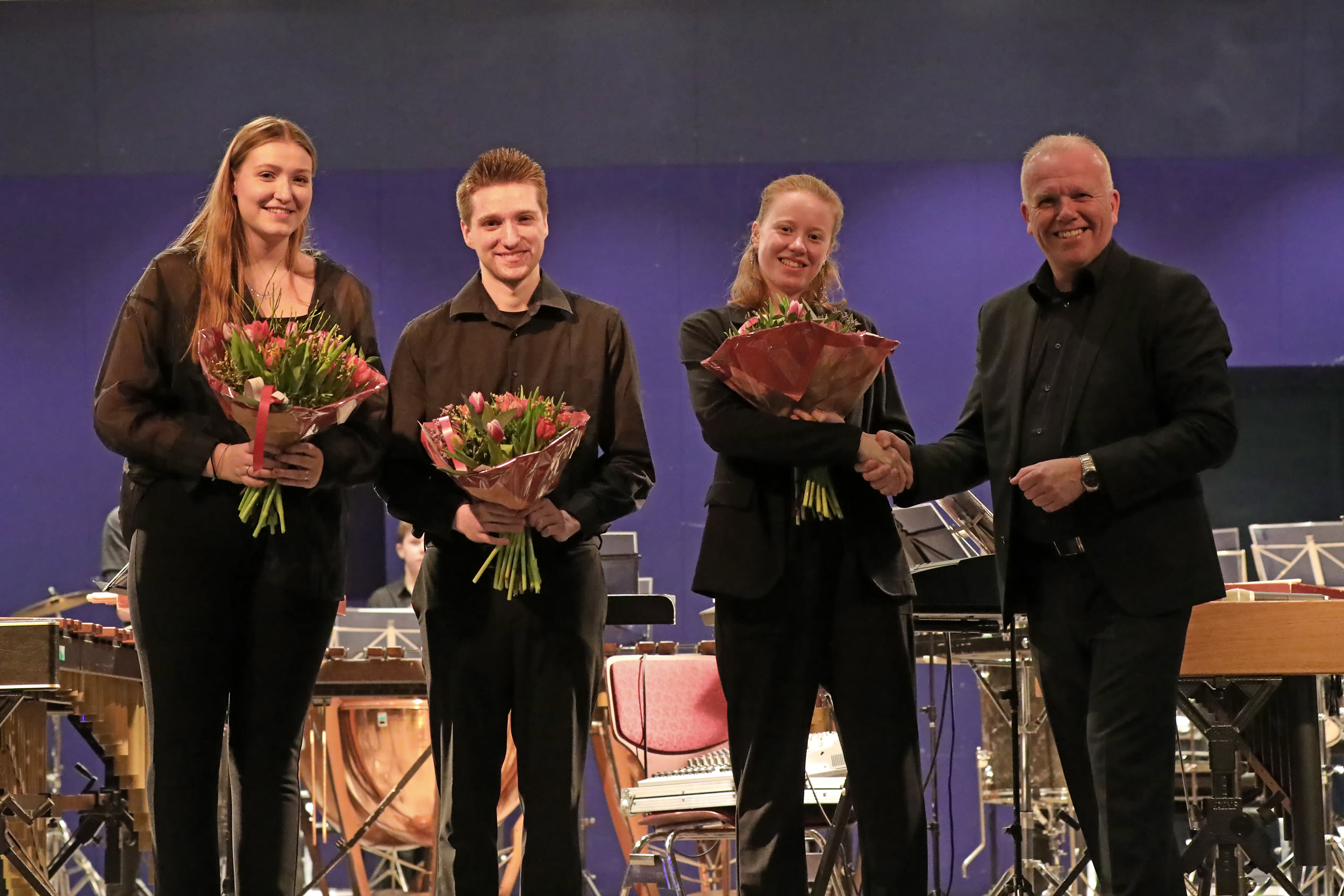 Extra feestelijk werd de avond door de huldiging van drie jonge verenigingsleden. Saxofonisten Genvieve van der Lek, Lot van Duffelen en trombonist Gijs van Duffelen werden gehuldigd voor hun 12,5 jarig lidmaatschap van Ad Astra.